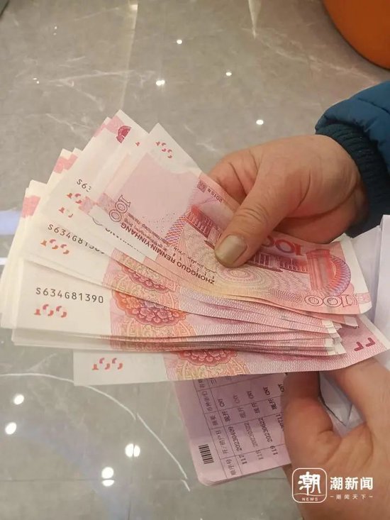 上午11点不到,毕阿姨刚刚在柜台上办完取钱业务,向记者展示了刚取的新钱。
