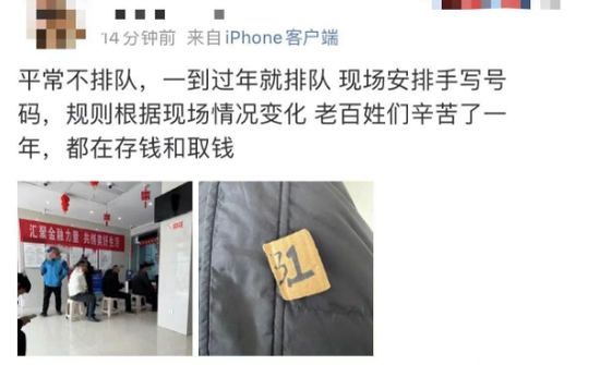 陈女士一大早去家附近的某银行取2万新钱,“因为大家庭今晚要吃年夜饭,取点新钱给大家包红包,没想到一到银行,前面排了9个人。”